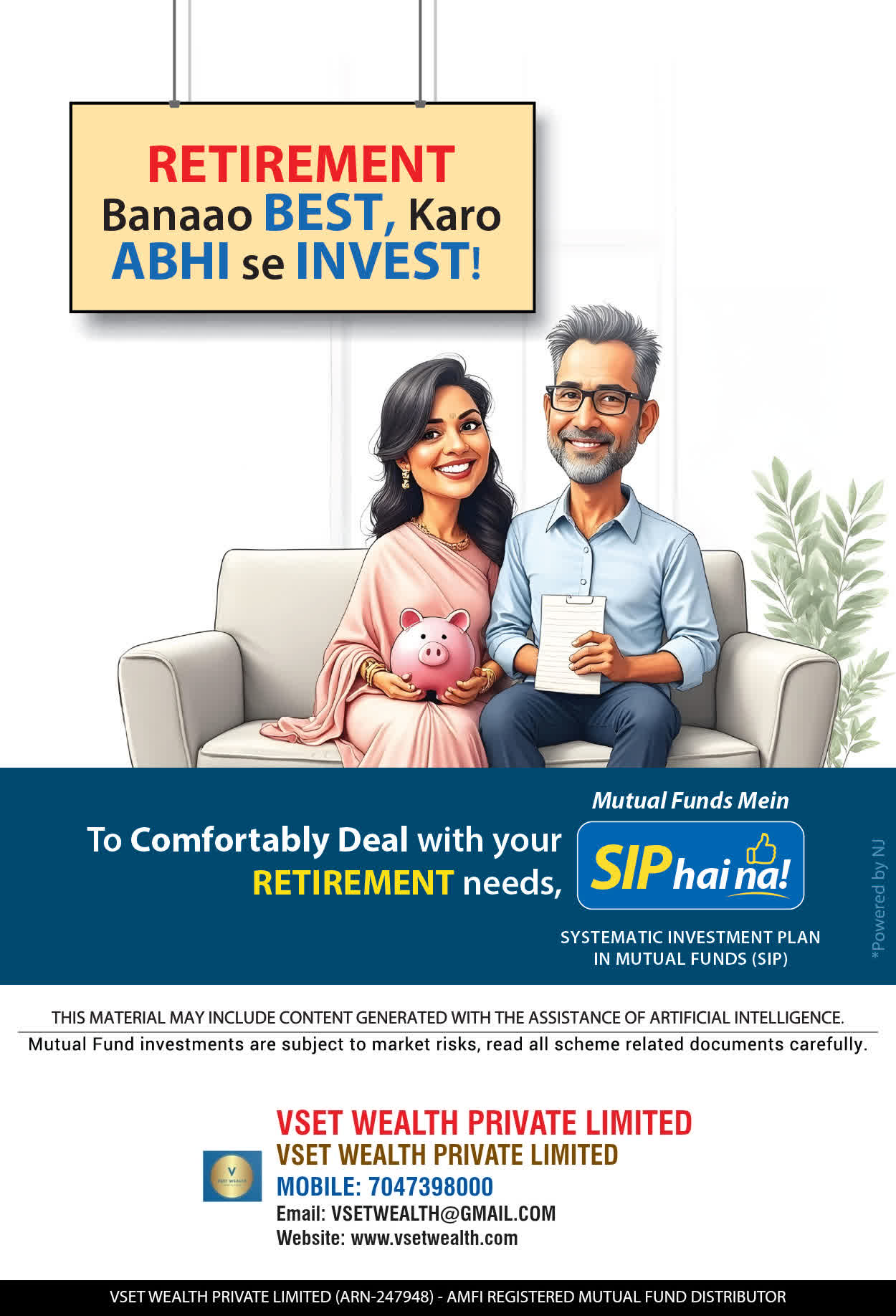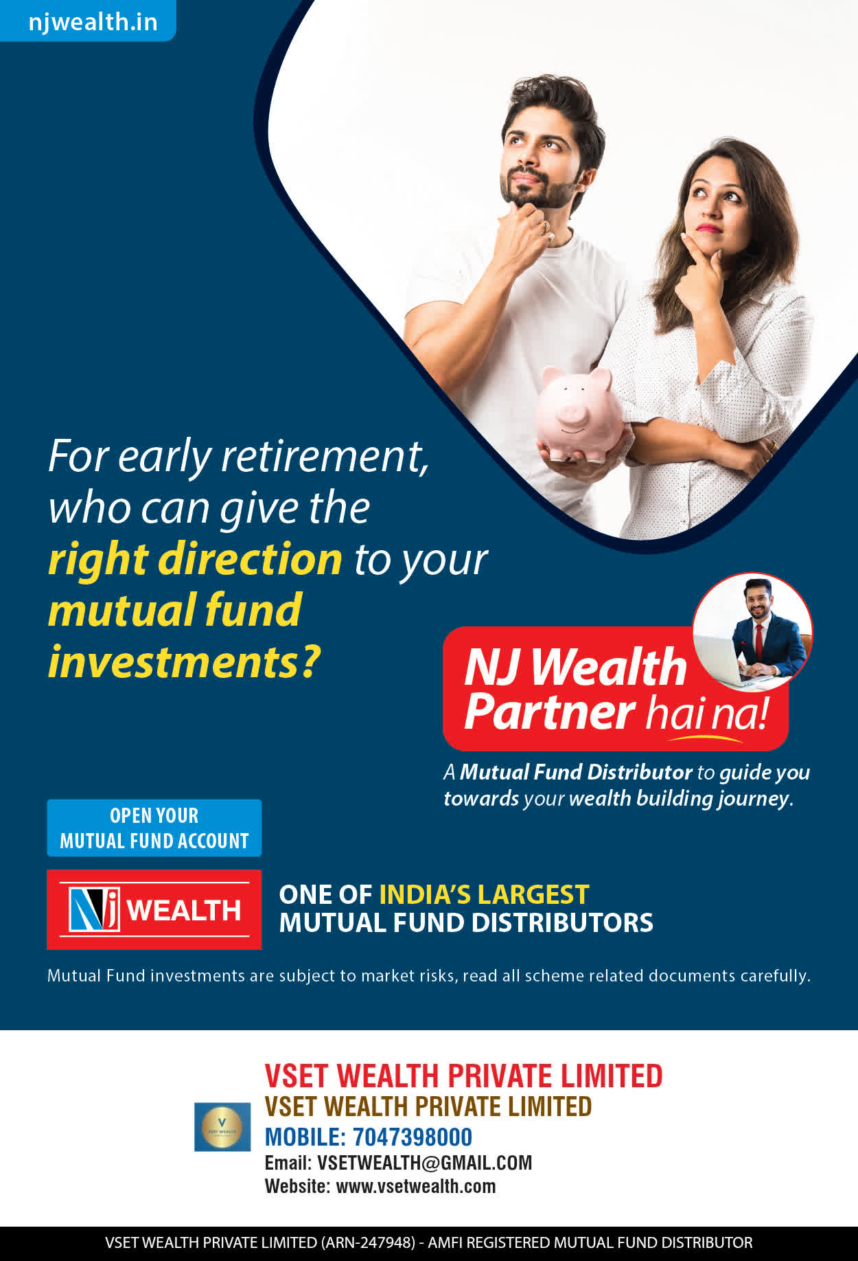 At, VSET WEALTH PRIVATE LIMITED our mission is to provide our clients with the best services in wealth creation and wealth management. We are driven to provide clients with simple, unbiased and uncluttered professional tools that adds value to their quality of life and results in actionable outcomes.